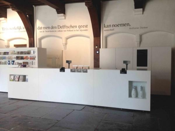 Tijdens het maken van de nieuwe tentoonstellingen van musuem Prinsenhof in Delft kwam ook de vraag om de niet-museale ruimten opnieuw in te richten. Het gaat daarbij om de entree, een ruimte voor de groepsontvangst en de educatie ruimte.
