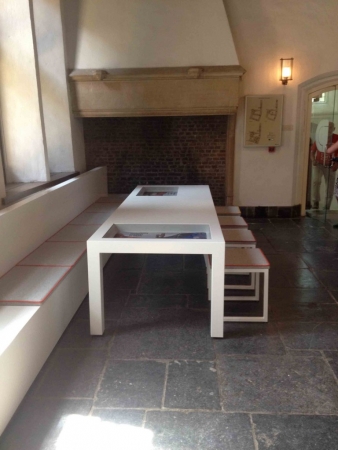 Het ontwerp bestaat in eerste instantie uit het leeg maken van de ruimtes. Het gebouw, een rijksmonument uit de eerste helft van de 15de eeuw, heeft prachtige ruimtes met oude details. Door hier slechts relatief lage blokken in te zetten die de ruimte begrensen en de looproutes bepalen, wordt op een heel bescheiden invulling gegeven aan het gevraagde programma.